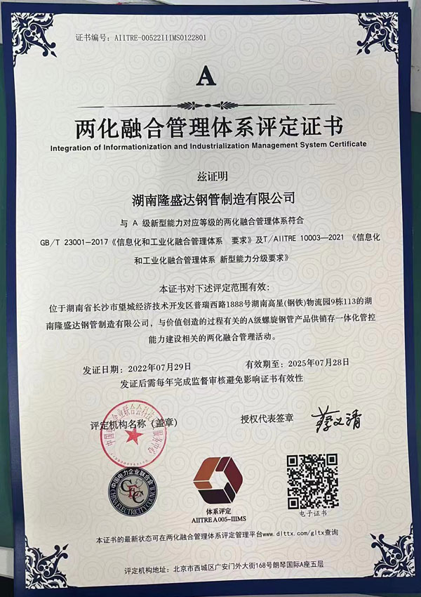 兩化融合評(píng)定證書
